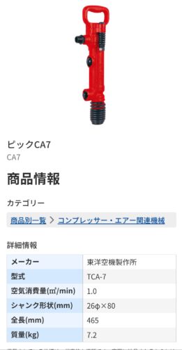 こちら、本体は斫り用のハンドチッパーなんですが、アンカー打設用のアタッチメントを製作してもらい、ハンドチッパーに装着してエアーの力で打設する!って工具です。