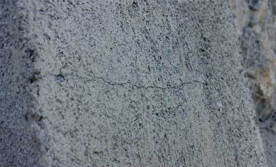 モルタル吹付けで、鉄製スペーサーとプラスチックスペーサーの場合でのクラックの入り方です。