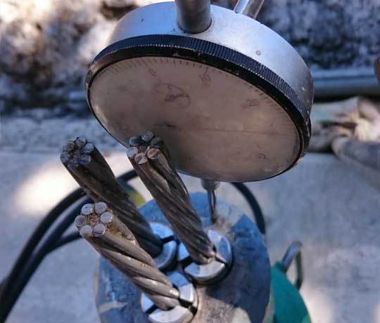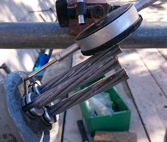 しかも、ゲージのサイズが小さいと鋼線が当たってしまい動きますし、アンカーヘッドのダイヤルゲージをセットする部分があまりにも少ない為、