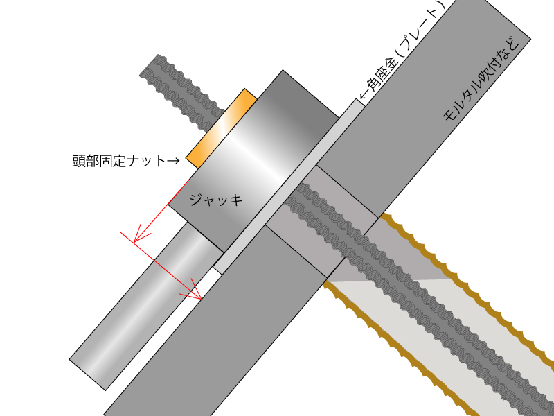 頭部処理の頭出しが10㎝の場合、ユニットジャッキを使用した場合伸びしろは10㎝以下になります。