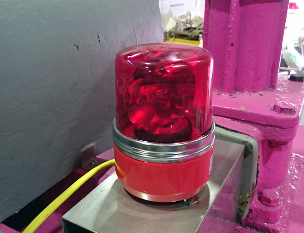 モーター等での捲き込まれ事故が多発してからの流れは回転灯の設置です。
