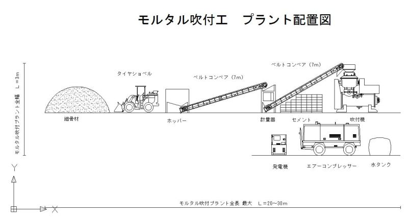 今の吹付けプラントヤードはだいたいが20m超。