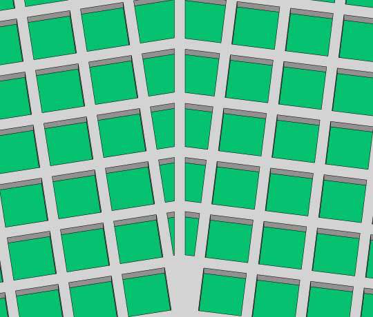 3,上下ピッチを均等割して扇上にする。