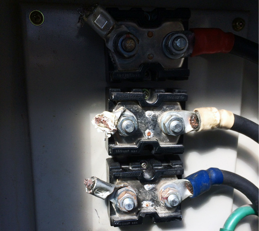100KVA発電器側はこの様に根元から切られています。