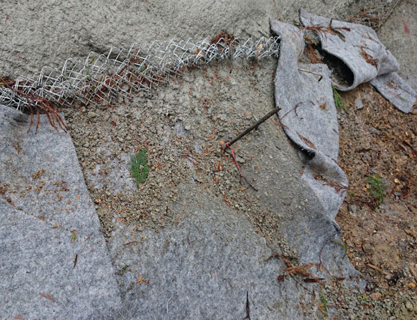 透水マットなどを上に敷いて吹付けしていますよね。