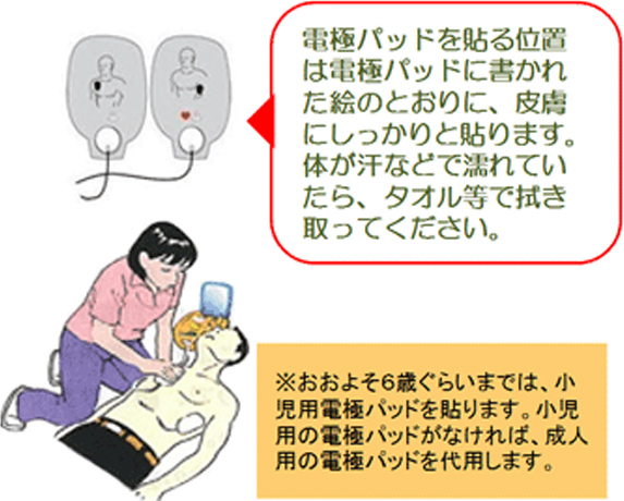また、もしもパッドを取り付けられない何かがあった場合、心臓を挟むようにしてパッドを取り付けて下さい。