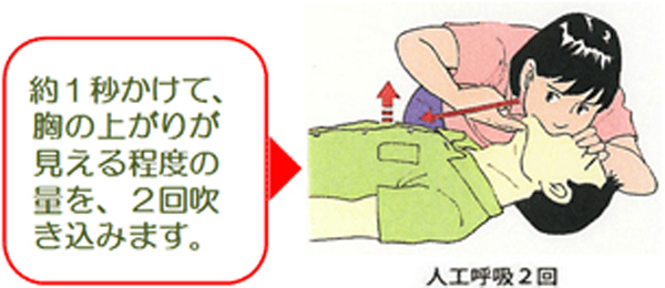5.訓練を積み技術と意思がある場合は、胸骨圧迫の後、人工呼吸を2回行う