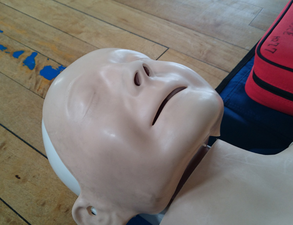 呼びかけから心臓マッサージ、人工呼吸、AEDと勉強をしてきました。