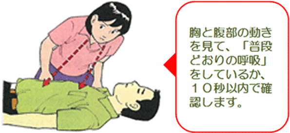 アゴをクイッっと上げて気道を確保しつつ、胸部の膨らみを確認して下さい。