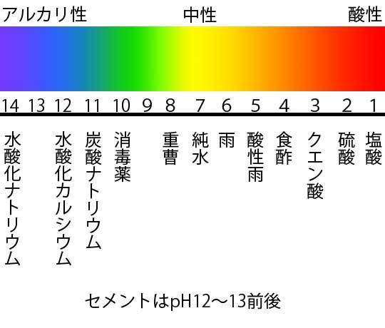 pHは酸性からアルカリ性の間に0~14の目盛りをつけて、