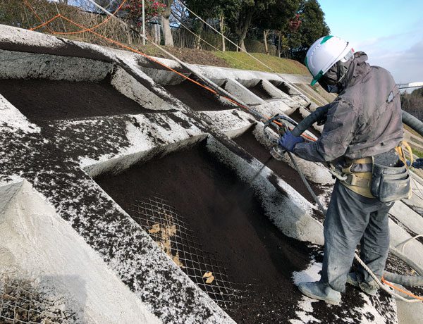 吹付厚3センチの場合、頭が少し出る程度で完了です。