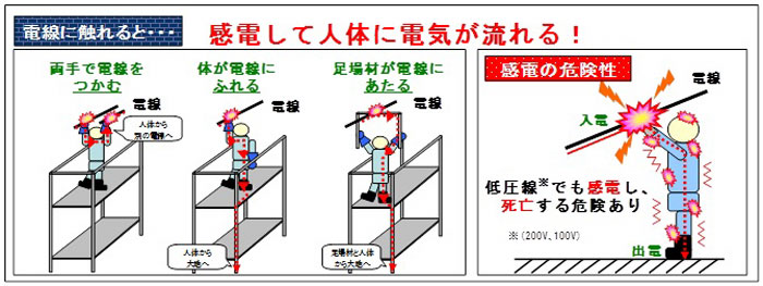 送電線等の付近での施工はかなり注意を促す必要があります。