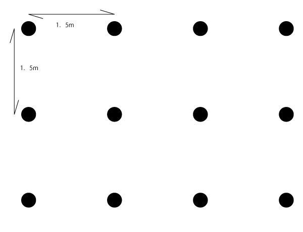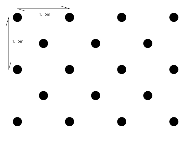 鉄筋挿入工での配置の基本は正方形配置でした。