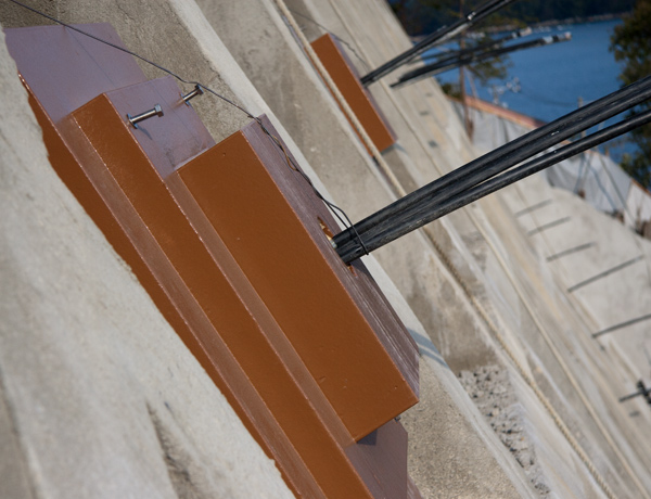 その際、全体的な高さ(左右アンカーのバランス)、水平、アンカー鋼線の位置などを若干補正します。