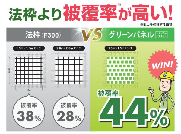 面として機能する格子寸法なので、受圧面積が法枠より大きく、地山をより被覆できます