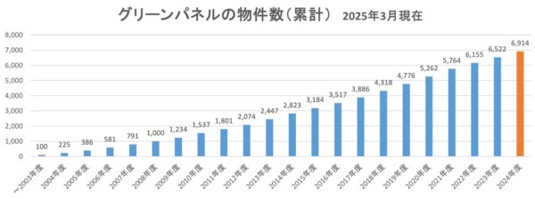 グリーンパネルの現場、およそ3件に1件の割合でご採用いただいております(2023年度実績 39.5%)